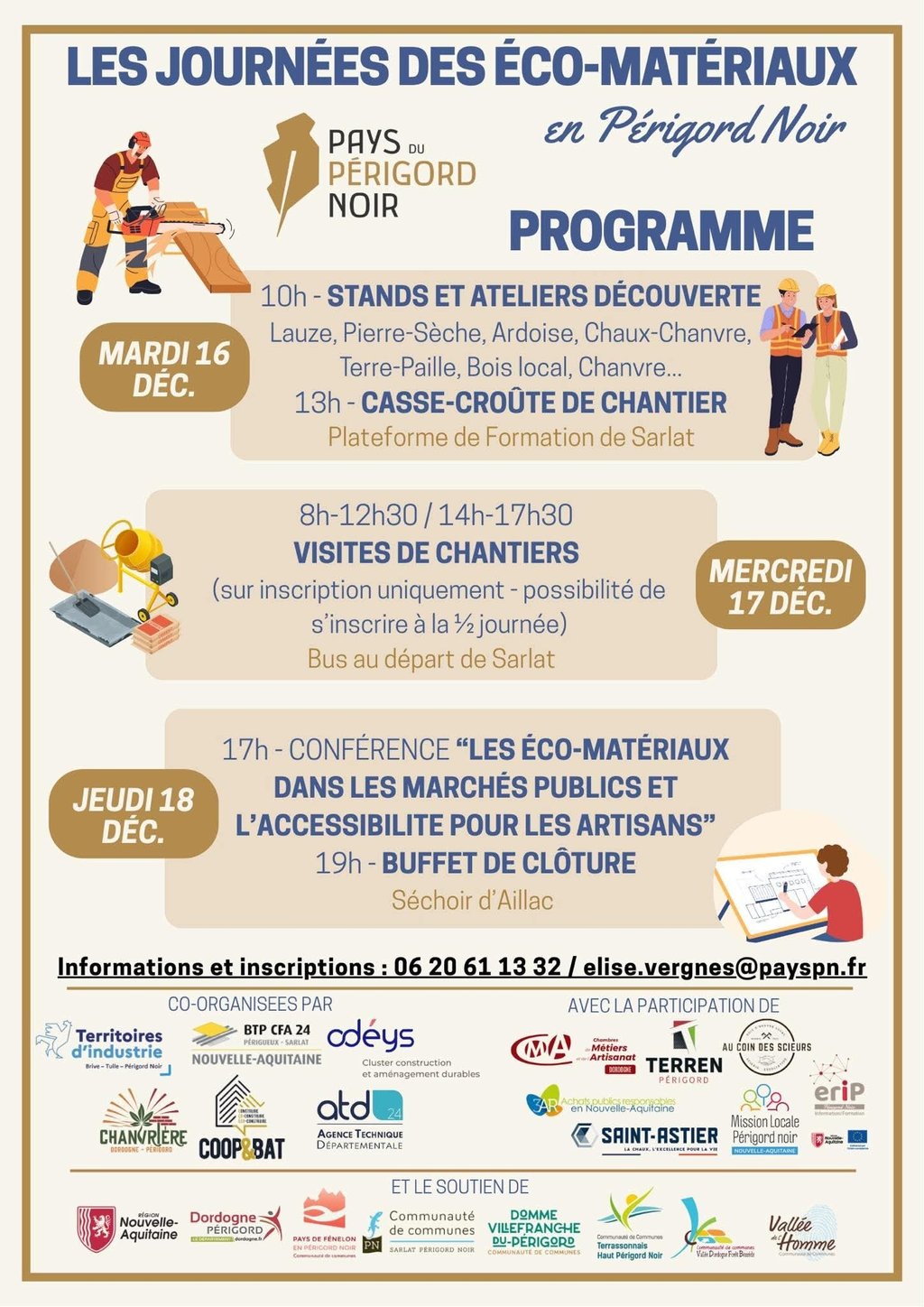 Cet événement, ouvert à tous, propose des stands et ateliers découverte, des visites de chantiers, ainsi qu’une conférence dédiée à l’usage des éco-matériaux dans les marchés publics et à leur accessibilité pour les artisans.