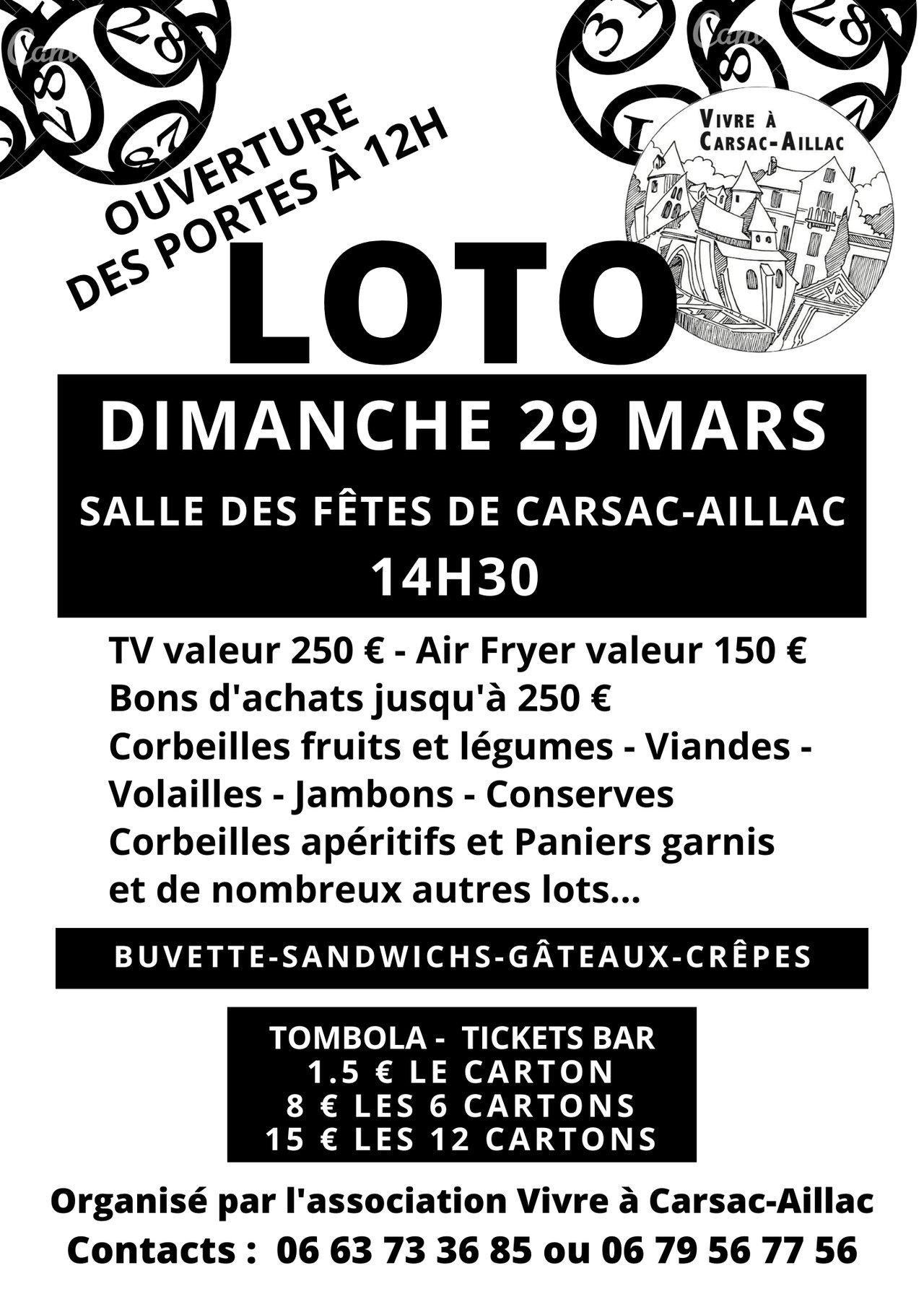 LOTO DE L'ASSOCIATION VIVRE Ă CARSAC AILLAC // 29 MARS