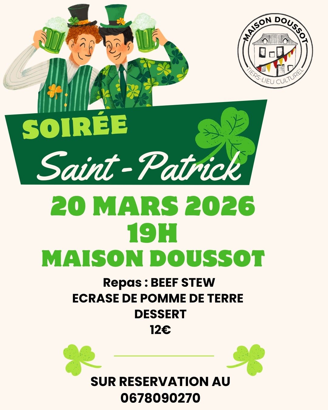 SOIRÉE SAINT-PATRICK CE VENDREDI // ASSOCIATION MAISON DOUSSOT